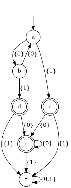 >>> Just a = dfa [ ("a",[('1',"c")],"b"), ("b",[('1',"d")],"a"), ("c",[('1',"f")],"e"), ("d",[('1',"f")],"e"), ("e",[('1',"f")],"e"), ("f",[],"f") ] "a" ["c","d","e"]